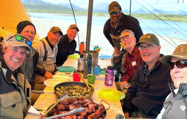 Most evenings bring a new campsite in spectacular settings. On Standard trips, you’ll help set up camp—participating in the adventure without being overwhelmed by logistics. On Fisherman’s Deluxe trips, camp is already set when you arrive. Either way, you’ll soon enjoy delicious dinners—perhaps featuring fresh-caught salmon alongside choice cuts of meat, vegetables, and all the trimmings.